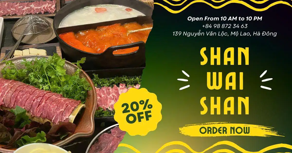 SHAN WAI SHAN HOTPOT là nhà hàng Trung Hoa chuyên phục vụ lẩu truyền thống chuẩn vị Tứ Xuyên, mang đến trải nghiệm ẩm thực đậm đà và tinh tế. Với không gian sang trọng, ấm cúng cùng nguyên liệu tươi ngon, đa dạng món nhúng và nước lẩu cay nồng đặc trưng, SHAN WAI SHAN là điểm đến lý tưởng cho những ai yêu thích văn hóa ẩm thực Trung Hoa và muốn thưởng thức những bữa tiệc lẩu trọn vẹn bên gia đình, bạn bè.
